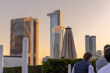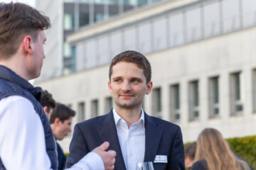 Zum stimmungsvollen Abschluss des Tages gab es ein gemeinsames Wein-Tasting auf der Dachterrasse der Bank. Bei einem Glas Wein bot sich nochmals die Gelegenheit zum entspannten persönlichen Austausch.