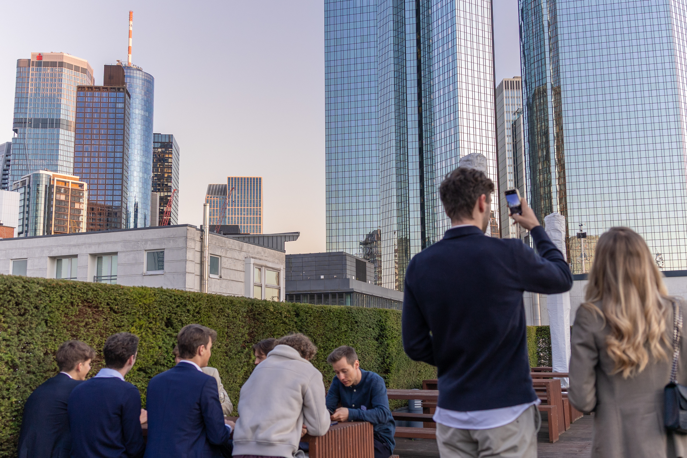 Zum stimmungsvollen Abschluss des Tages gab es ein gemeinsames Wein-Tasting auf der Dachterrasse der Bank. Bei einem Glas Wein bot sich nochmals die Gelegenheit zum entspannten persönlichen Austausch.